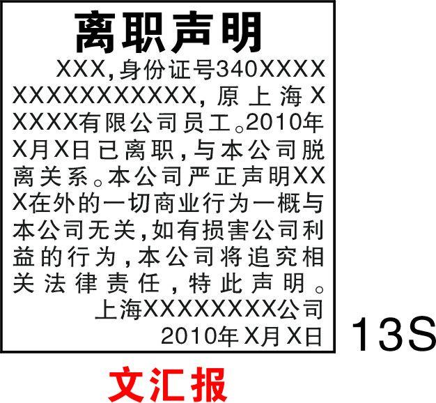 文匯報(bào)離職聲明登報(bào)樣式13行