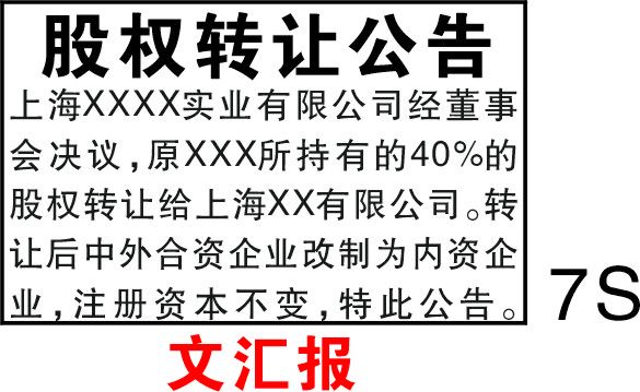 文匯報(bào)股權(quán)轉(zhuǎn)讓公告登報(bào)樣式7行